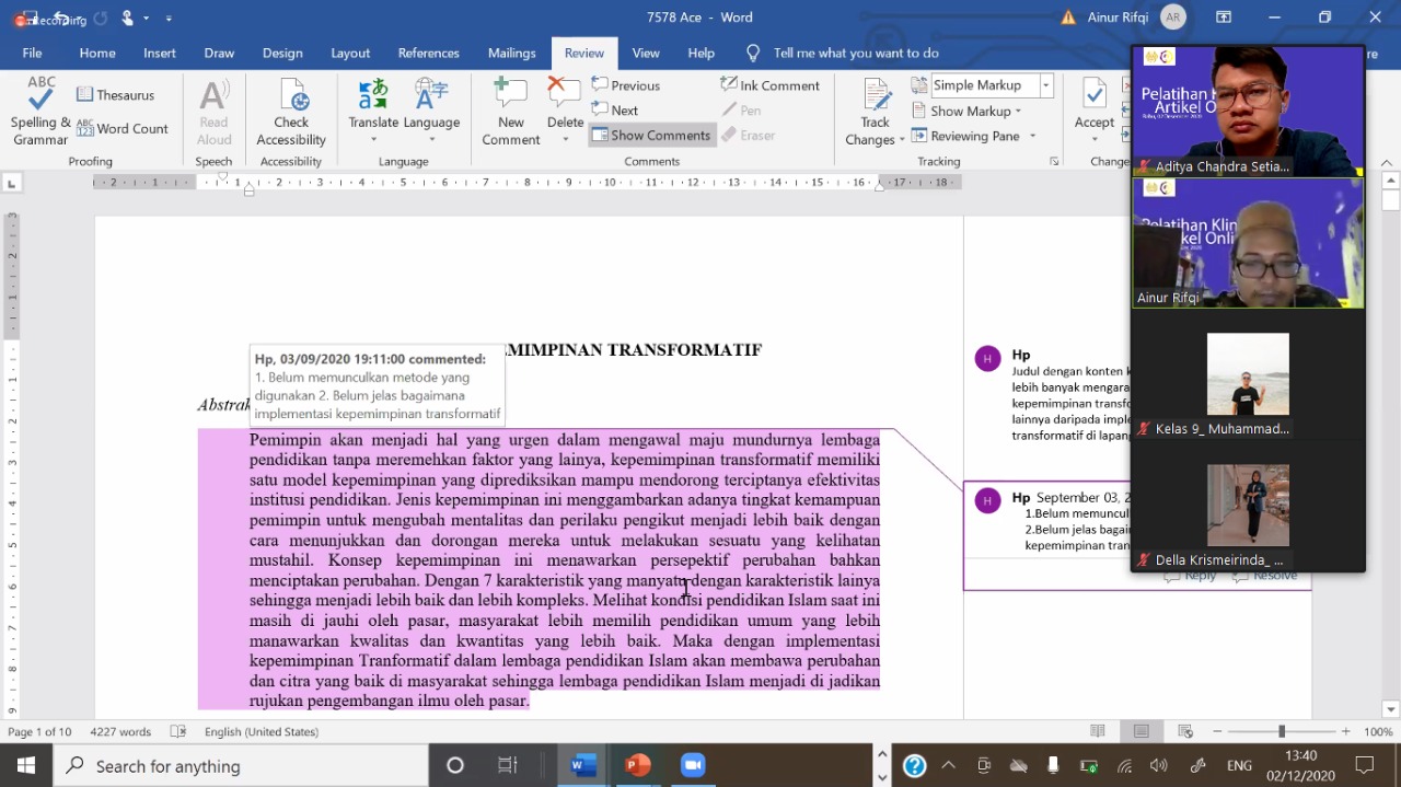 mp.unesa.ac.id - Rabu (2/12). Dalam peningkatan partisipasi civitas akademika untuk menghasilkan produk karya tulis ilmiah sekaligus bentuk nyata implementasi Tri Dharma pergurua