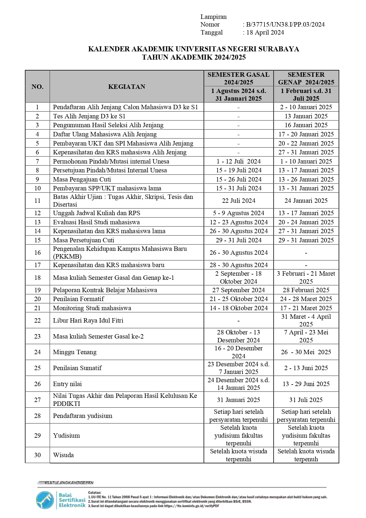 Informasi - Kalender Akademik Gasal dan Genap 2024/2025
